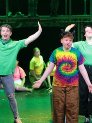 There is a lot going on in this musical – much of it rather unsurprisingly being music and all credit to Musical Director, Ella Daire, as every offering had an energy and sense of utter enjoyment of their own. ‘Percy Jackson’ of the title, played with supreme confidence and immense talent by Sam Broomhall-Tighe has rock voice perfect for this personable character who through expert characterisation and his superb laid back approach had us on his side from the off. This was epitomised in a beautiful rendition of “Strong” by ‘Percy’ and ‘Sally’, Percy’s Mom, played impeccably by Ruby Blount . This is a show full of different characters all of whom adopted their characters with great confidence and humour as well as some amazing songs. Notable musical highlights include ‘Clarisse’, played by Lauren Slater, ‘Annabeth’, very confidently played by Tiffany Steventon, ‘Grover’, humorously played by Thomas Bastable, ‘Luke’, played for all he was worth by Freddie Perry, ‘Percy’ and the Ensemble singing “Put You in Your Place”, ‘Percy’ and ‘Luke’s’ “The Last Day of Summer” and an almost show stopping rendition of “Good Kid” by Sam. Some great cameos too – Josh Mills as ‘Mr D’, Noa Bailey Cartwright as ‘Mr Bruner’ and Hannah Allsop as ‘Aunty Em’ all deserve a mention